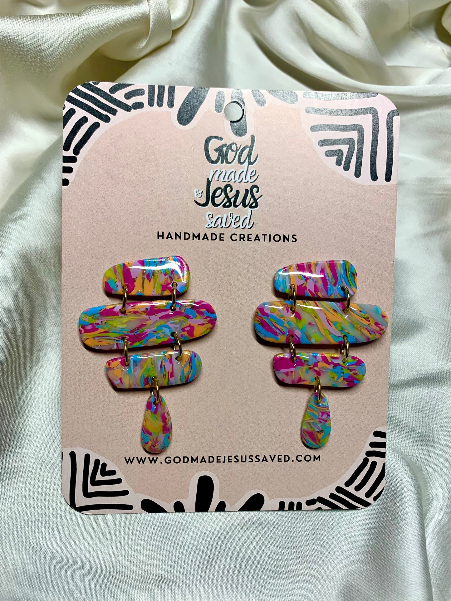 *Like you, this earring is a one-of-a-kind creation. It's the only pair like it to exist! Get them while you can! Handmade from polymer clay with a resin top coat, these earrings include stainless steel, nickel-free posts on the back.