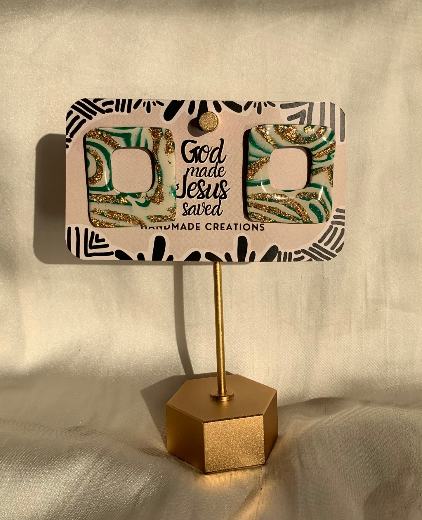*Like you, this earring is a one-of-a-kind creation. It's the only pair like it to exist! Get them while you can! Handmade from polymer clay with a resin top coat, these earrings include stainless steel, nickel-free posts on the back.